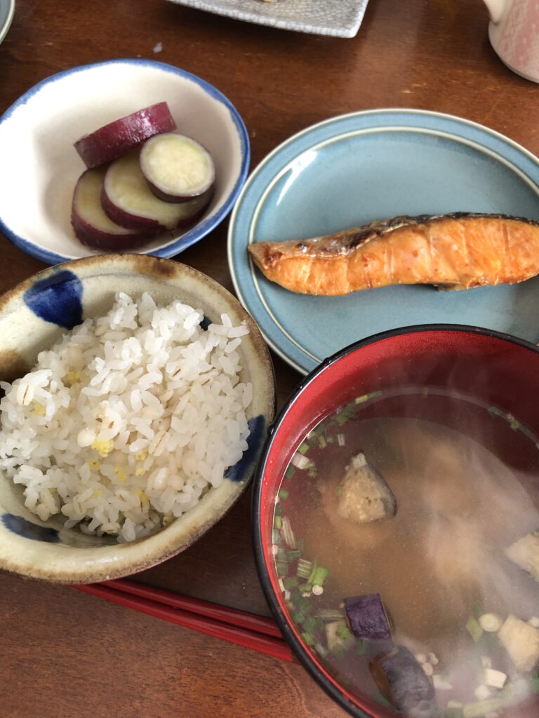 ご飯とお味噌汁、おかずが並ぶ和食の献立は